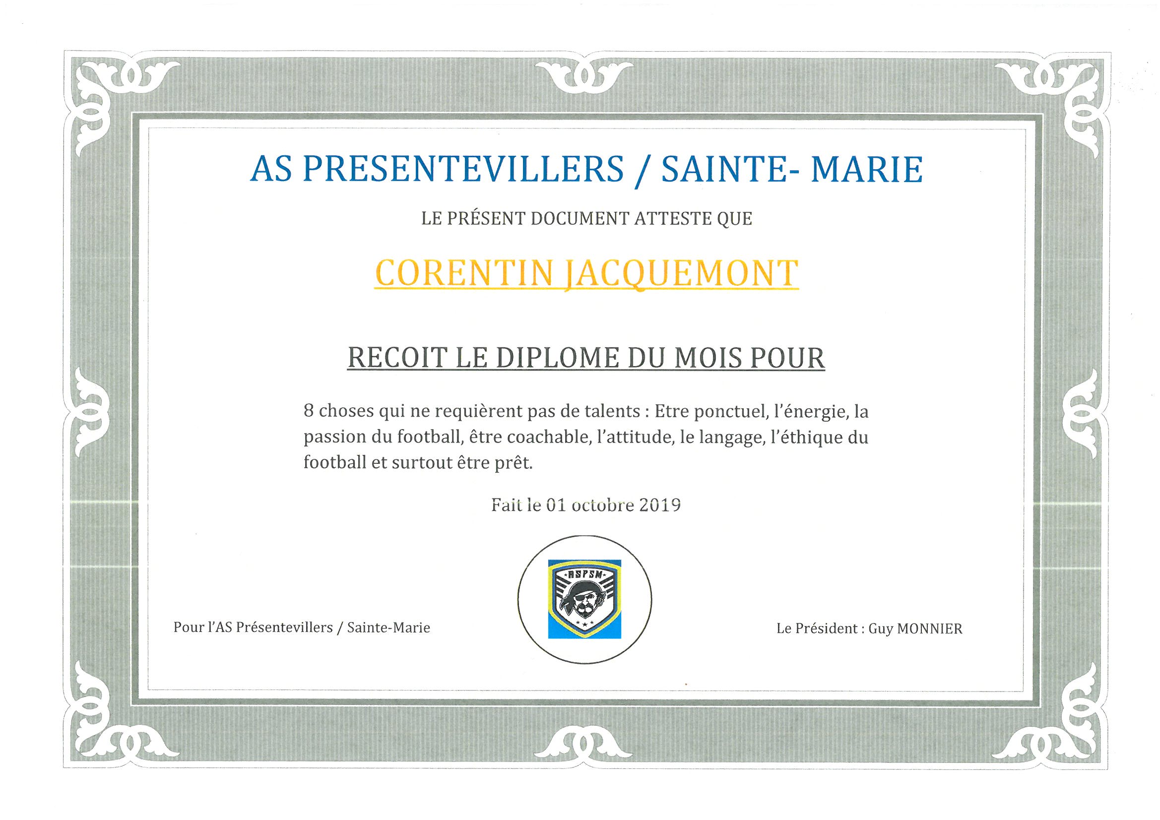 Diplôme Corentin JACQUEMONT